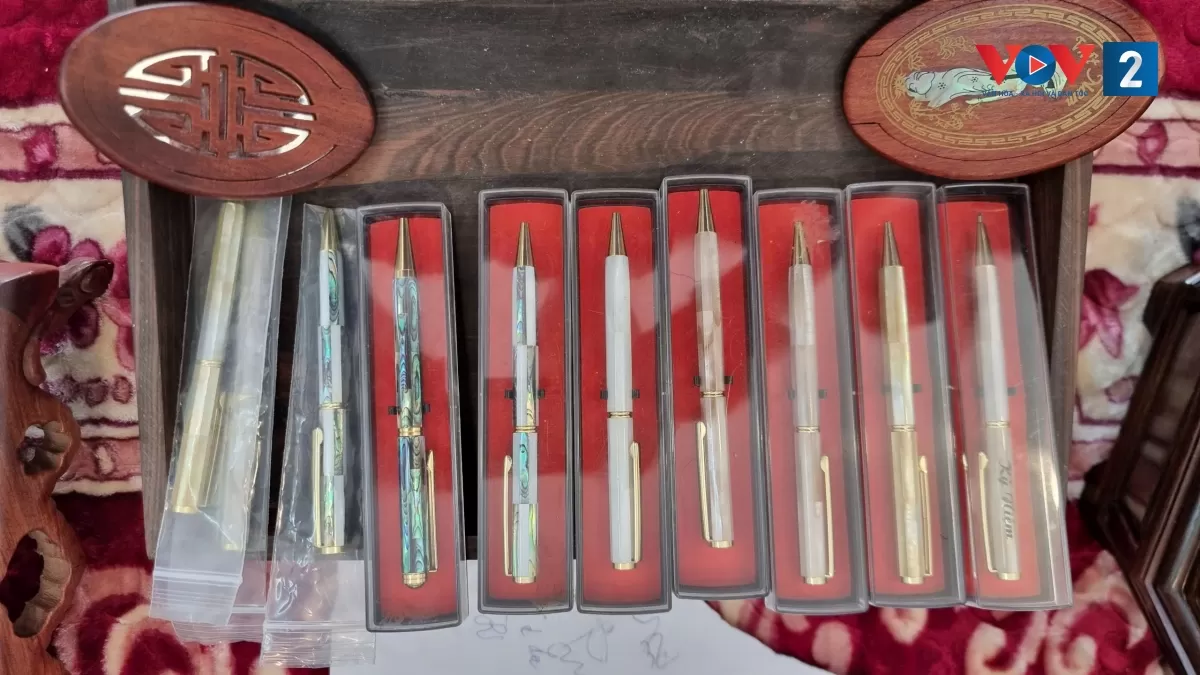 Không chỉ dừng lại ở các sản phẩm truyền thống, anh còn mở rộng ứng dụng khảm trai vào nhiều sản phẩm đời sống như guốc gỗ, vỏ điện thoại, bật lửa, đồng hồ... Đồng thời, anh chủ động đưa sản phẩm lên các nền tảng số như website, mạng xã hội để quảng bá, giúp sản phẩm làng nghề tiếp cận rộng rãi hơn với khách hàng.